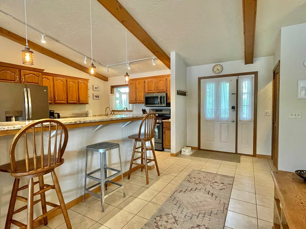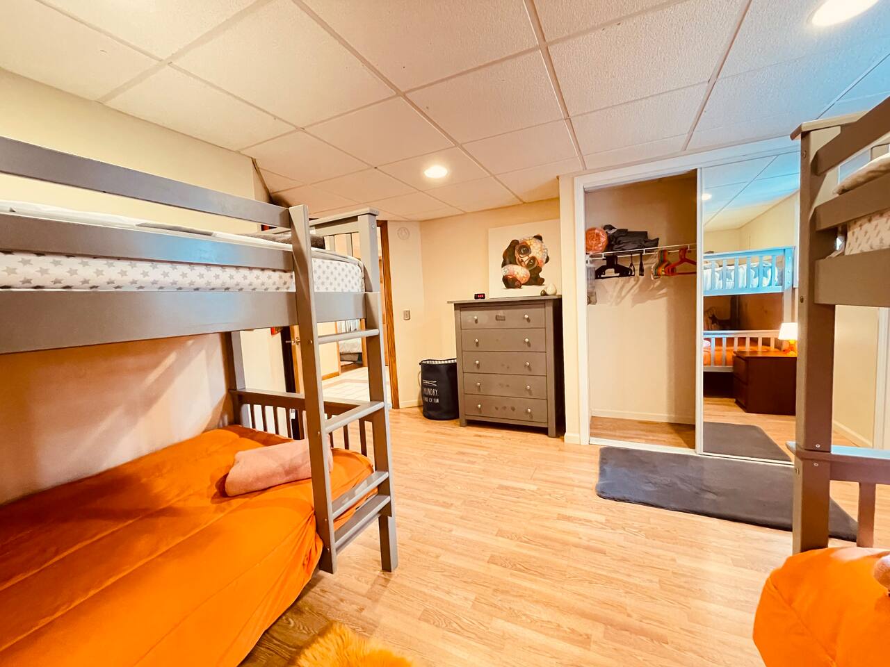 Secluded backyard l Hot Tub | | Keyless Entry | Dock | Home Theater Destined to create long-lasting family memories, this charming Whitewater home sets the stage for effortless days spent kayaking or paddle boarding, bird watching, star gazing or ice fishing, and enjoying Lake Lorraine! Bedroom 1: Queen Bed | Bedroom 2: Queen Bed | Bedroom 3: Queen Bed | Bedroom 4: Queen Bed | Bedroom 5: 2 Twin Bunk Beds (suitable for children) OUTDOOR LIVING: Lakefront, 6-person hot tub, fire pit, gas grill, furnished patio, deck, 3 kayaks, 2 paddle boards (in season). INDOOR LIVING: 2 Smart TV 85’ and 48’ w/ Fire TV and DVD library, gas fireplace, foosball table, card table, dining table, board games, ceiling fans KITCHEN: Fully equipped w/ stainless steel appliances, cooking basics, dishware & flatware, Nespresso & drip coffee makers, toaster, knife set, kettle GENERAL: Free WiFi, central heat & A/C, laundry detergent, linens & towels, beach towels, complimentary toiletries, iron & board