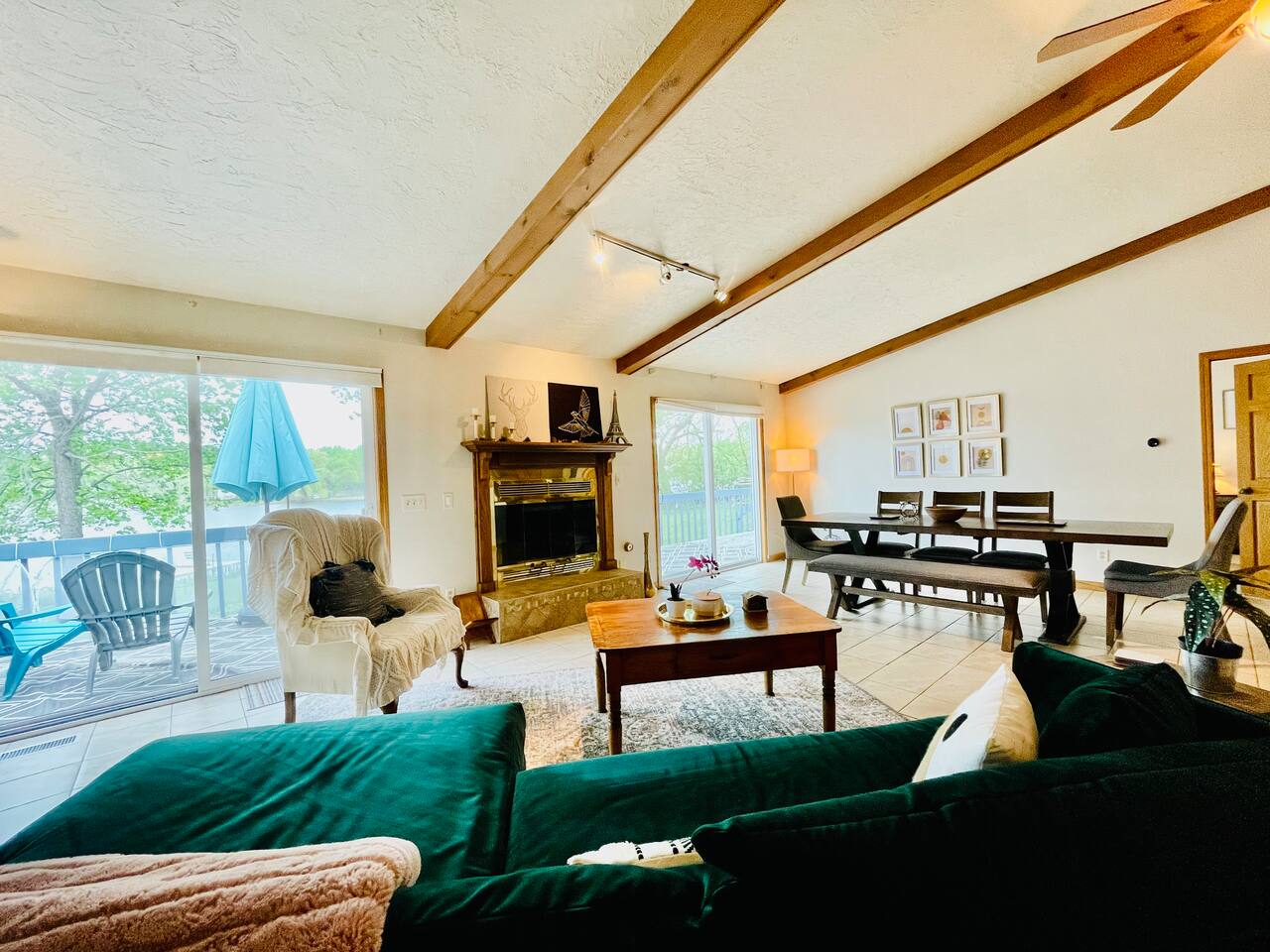 Memories await to be made on the lake at our family-friendly home near Whitewater. Perched on the shores of Lake Lorraine, this 5-bedroom, 3-bath house is loaded with at-home amenities, including a private 6-person hot tub, game room, and private dock - perfect for a trip with friends or family! For scenic hikes, or mountain bike rides Kettle Moraine State park is minutes away. Come birdwatching, kayaking, or relaxing around a campfire in summer or skiing, ice-fishing and snowshoeing in winter.